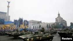 В Киеве, на Крещатике и на площади Независимости, состоялся военный парад, в котором участвовали четыре тысячи военнослужащих и около 200 единиц военной техники.